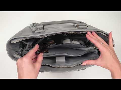 14" LISA DESIGNER LAPTOP HANDBAG | GREY LEATHER | CHAMPAGNE GOLD | NO GIFT BOX